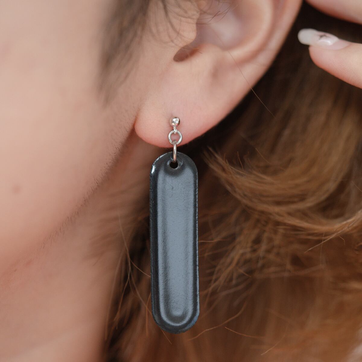 素材:ピアスポスト/キャッチ/丸カン:サージカルステンレス/316L stainless、ボール:真鍮(ロジウムメッキ)、トップ:琺瑯用鉄板(ホーロー加工)