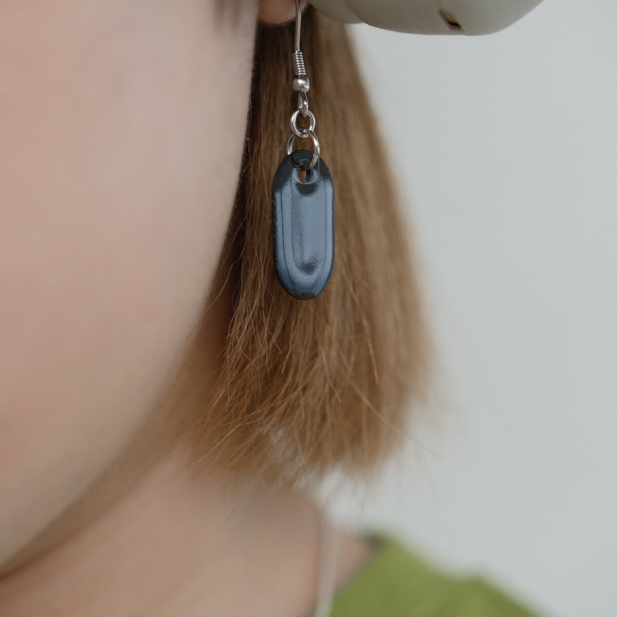 シンプルなデザインながら、動くたびに表情が変わる繊細なピアス。琺瑯(ホーロー)のサイズが小さく、さりげなく可愛らしさをプラスします。