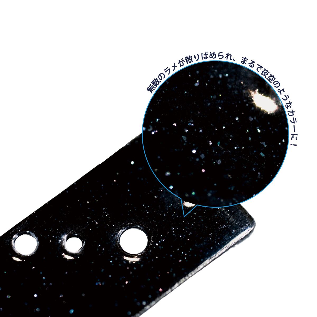 性別や世代を問わず楽しめるユニセックスなデザインで、大切な方とのペア使いにもおすすめです。ブレスレットチェーンは経年変化を楽しむことができるシルバー素材を採用。カラーは、夜空に瞬く星のきらめきをイメージして散りばめた「スパークルブラック」。上品で深みのあるブラックが、洗練されたデザインを引き立てます。